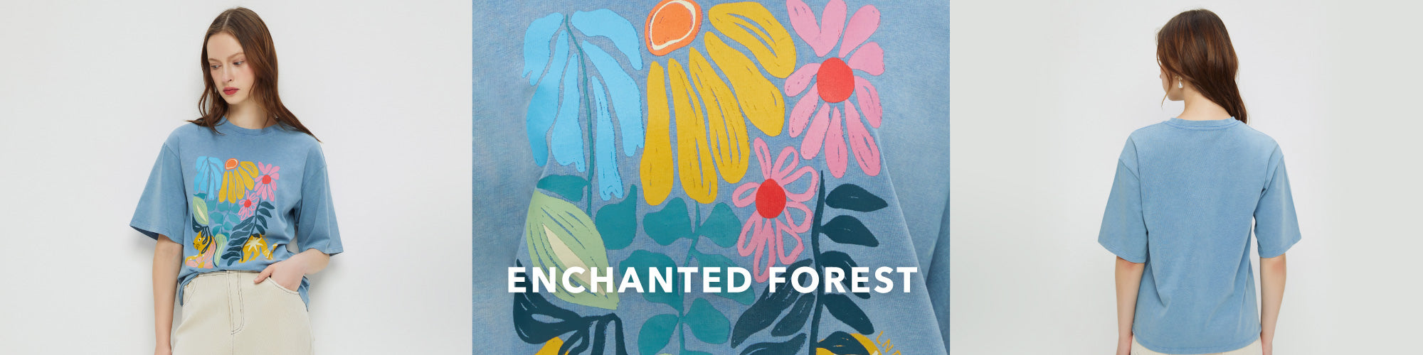 เสื้อยืดแขนสั้นพิมพ์ลาย คอลเลกชัน Enchaned Forest