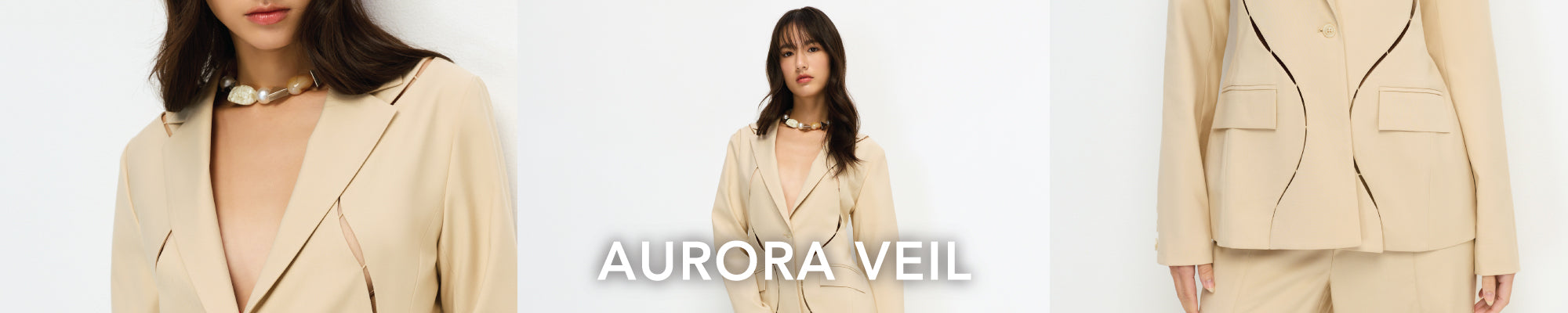 เสื้อแจ็คเก็ตแขนยาวแต่งคัตเอาท์ทรงเคิฟ คอลเลกชัน Aurora Veilเสื้อแจ็คเก็ตแขนยาวแต่งคัตเอาท์ทรงเคิฟ คอลเลกชัน Aurora Veil