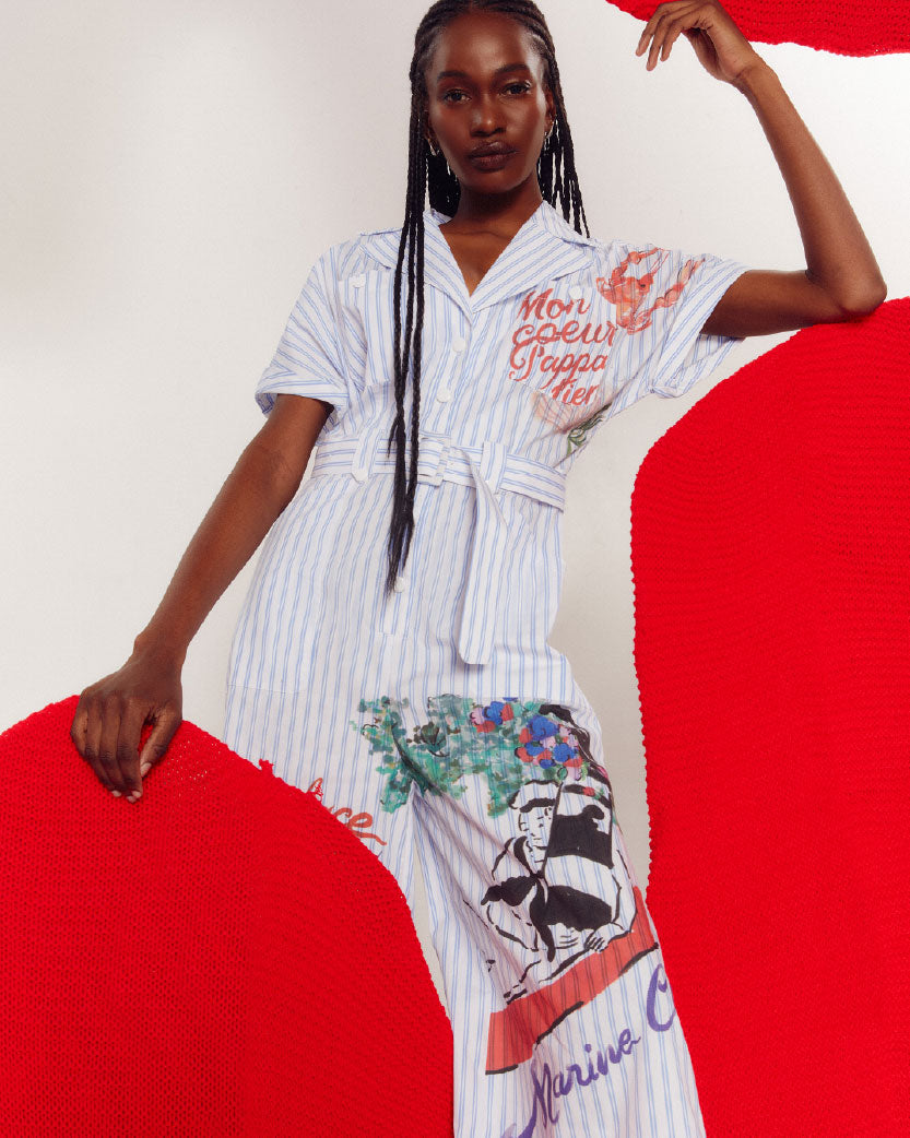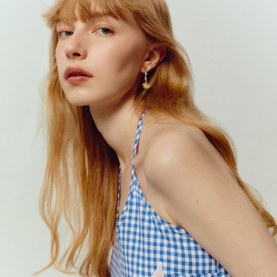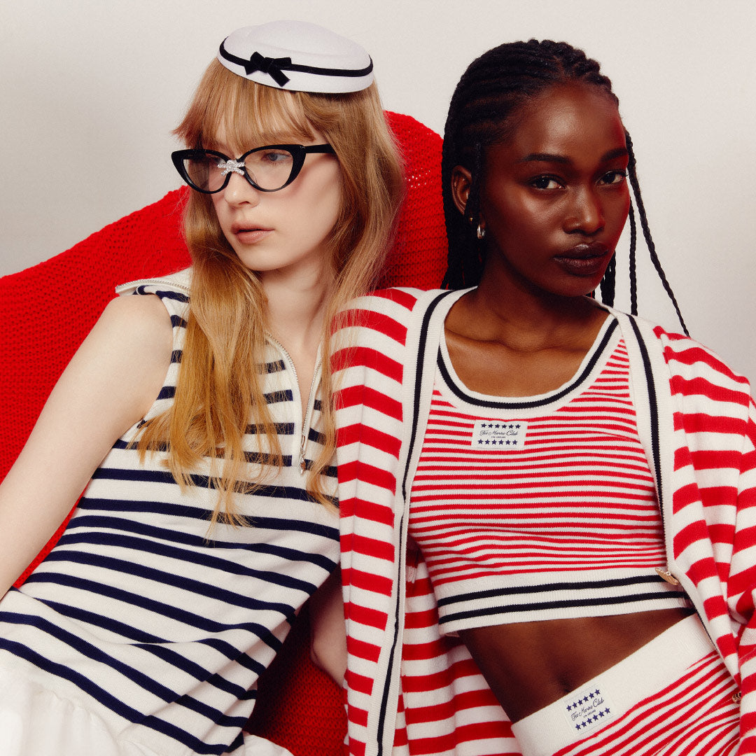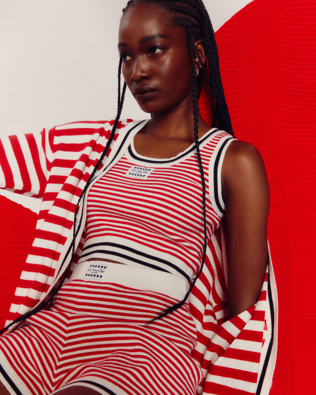 From wide-leg denim pants to long-sleeve cardigans and essential t-shirts, The Secret Place collection offers endless mixing and matching possibilities. Statement pieces like the tulip pink checkered crop top and two-tone checkered swimsuit are complemented by practical accessories, including the whimsical inflatable ring-inspired bag, striped tote, and starfish-embroidered cap.