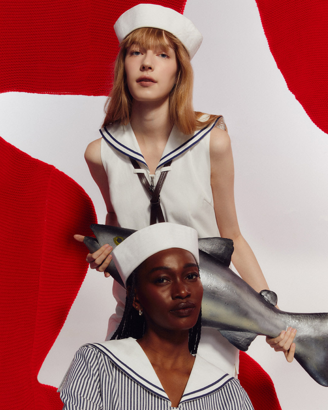 Drawing inspiration from classic naval uniforms, the collection's signature wide collars and flowing silhouettes create an unmistakable maritime aesthetic. Each piece is thoughtfully designed to capture the essence of tropical resort wear, offering wearers the gift of escape through fashion. The color palette ranges from serene oceanic hues like turquoise and navy blue to vibrant pops of tulip pink and clementine orange, creating a versatile wardrobe that transitions seamlessly from beach to street.