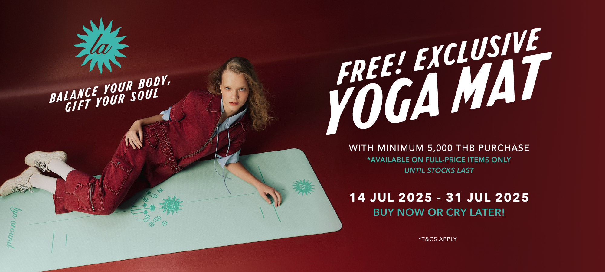 - Get free Lyn around Yoga Mat when purchased 5,000 THB / receipt (after discount or more).