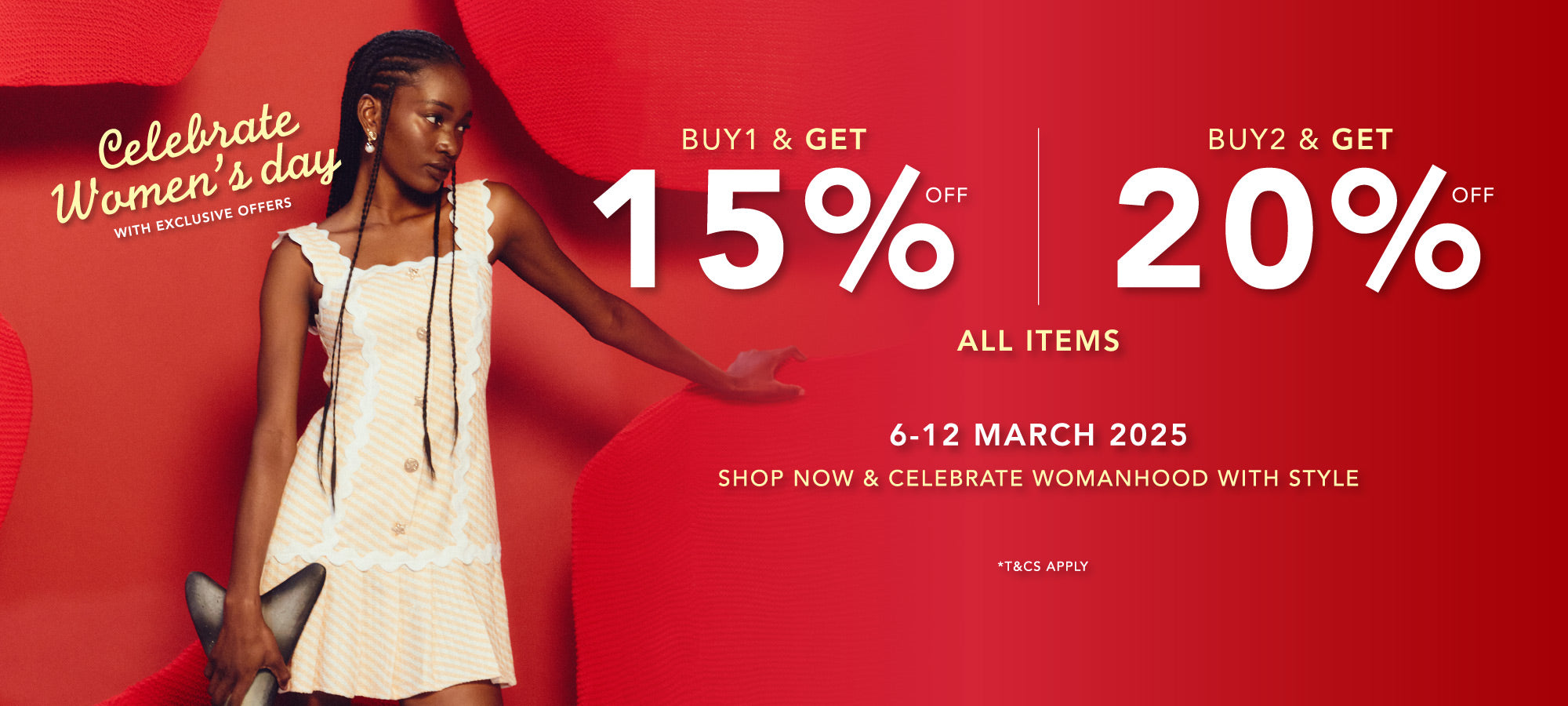 - Buy 1 piece get 15% off and Buy 2 pieces or more get 20% off on all items.