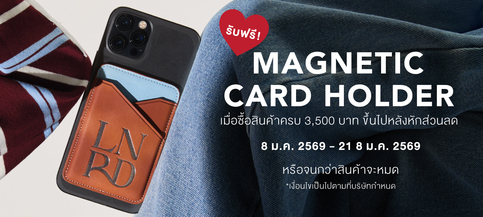 - รับฟรี Lyn around Magnetic Card Holder เมื่อซื้อสินค้าครบ 3,500 บาทขึ้นไปหลังหักส่วนลด / ใบเสร็จ